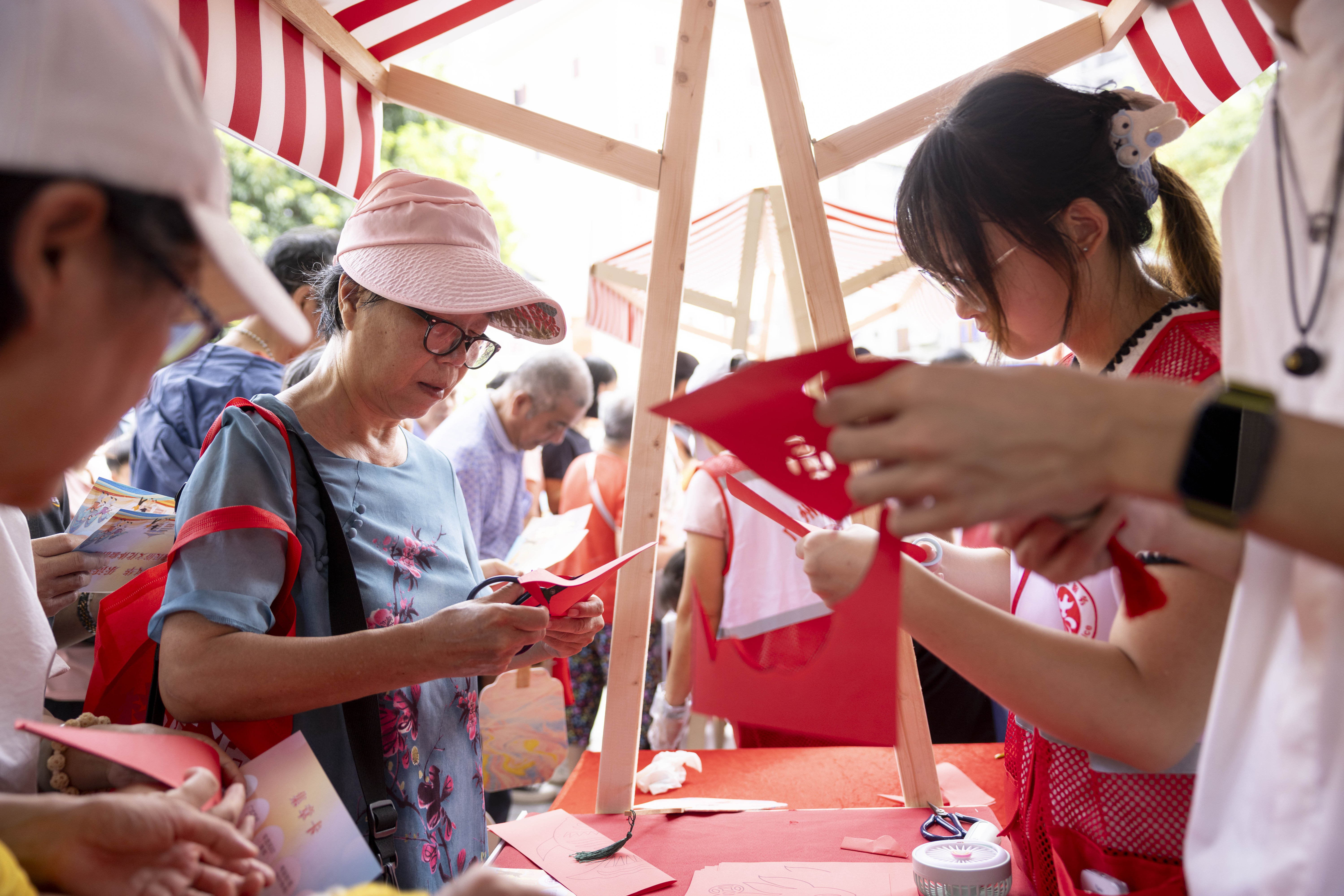 养老产品展示体验、家电义修、漆扇制作……现场还设置了银龄集市暨非物质文化遗产体验活动,吸引不少老年人驻足。银龄集市设立养老服务、居家适老化改造、健康管理、金融咨询等区域,展示轮椅、助老外骨骼机器人、健康指环等产品。在非遗体验区的粤剧脸谱摊位,60岁的李姨拿着画笔,细细描绘。“第一次亲手绘制脸谱,感觉特别有意义。”她说。