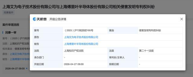 案件定于2026年4月27日在上海知识产权法院正式开庭审理。