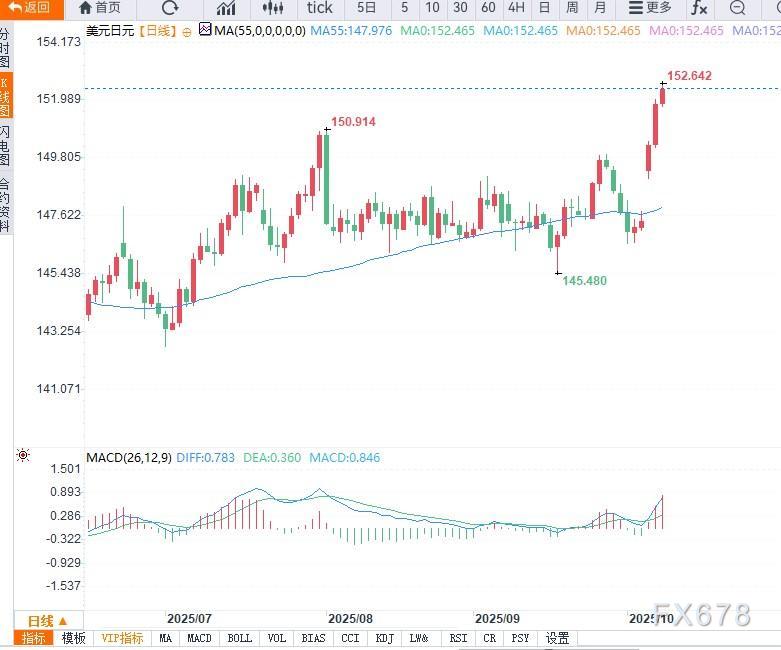 从技术结构看,USD/JPY已经突破多条短期阻力线,并向152.00–152.50区间攀升。若能进一步突破该区间,则下一个目标可看向153.00区间。